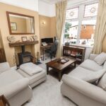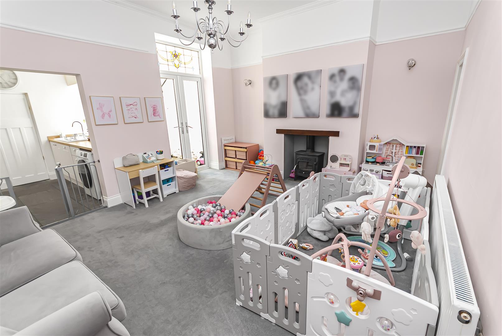 uPVC double patio doors leading to the rear yard, coving and picture rail, radiator, power points, , central ceiling light and wood burning stove with wooden beamed mantel and convenient under-stair storage