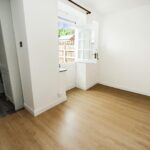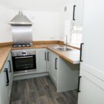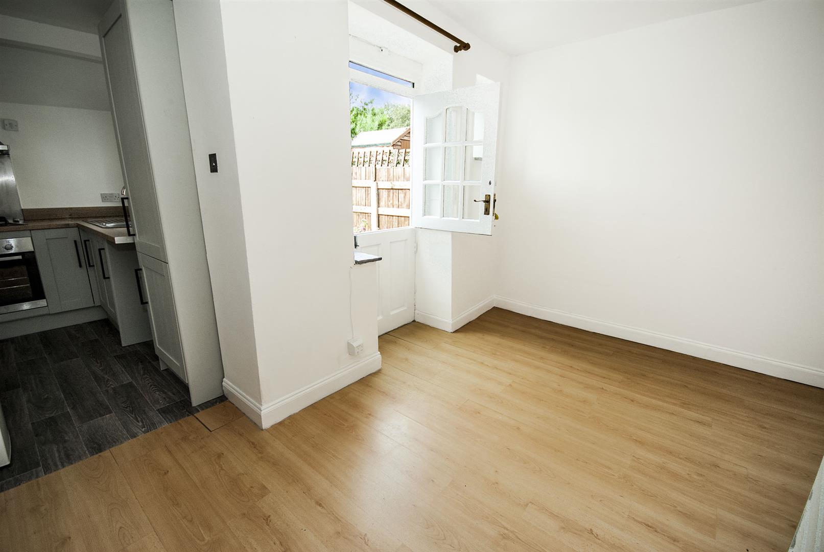 With a side facing UPVC double glazed window, laminate wood effect flooring and ample power points, newly fitted with range of wall and base units and contrasting work surfaces, inset sink and drainer unit, built in electric oven with gas hob with extractor hood, plumbing for a washing machine and space for a fridge/ freezer.
