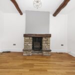 Double glazed window overlooking front garden, with original oak beams, exposed stone fire place, oak beam and recently fitted log burner, rustic wooden sliding door, wooden flooring, centre ceiling light and gas central heating radiator.