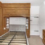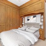 Double glazed window overlooking front garden, original wood beams, fitted wooden wardrobes and drawers, original wooden door, inset spots and gas central heating radiator.