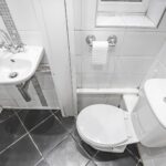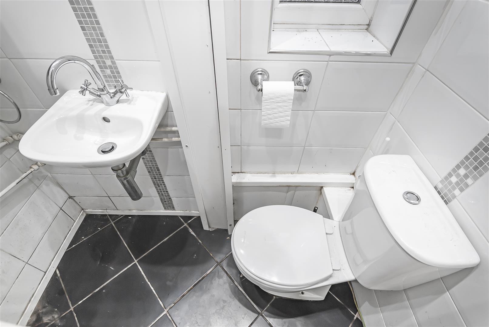 Convenient ground floor WC comprising a low-level WC and wash hand basin.
