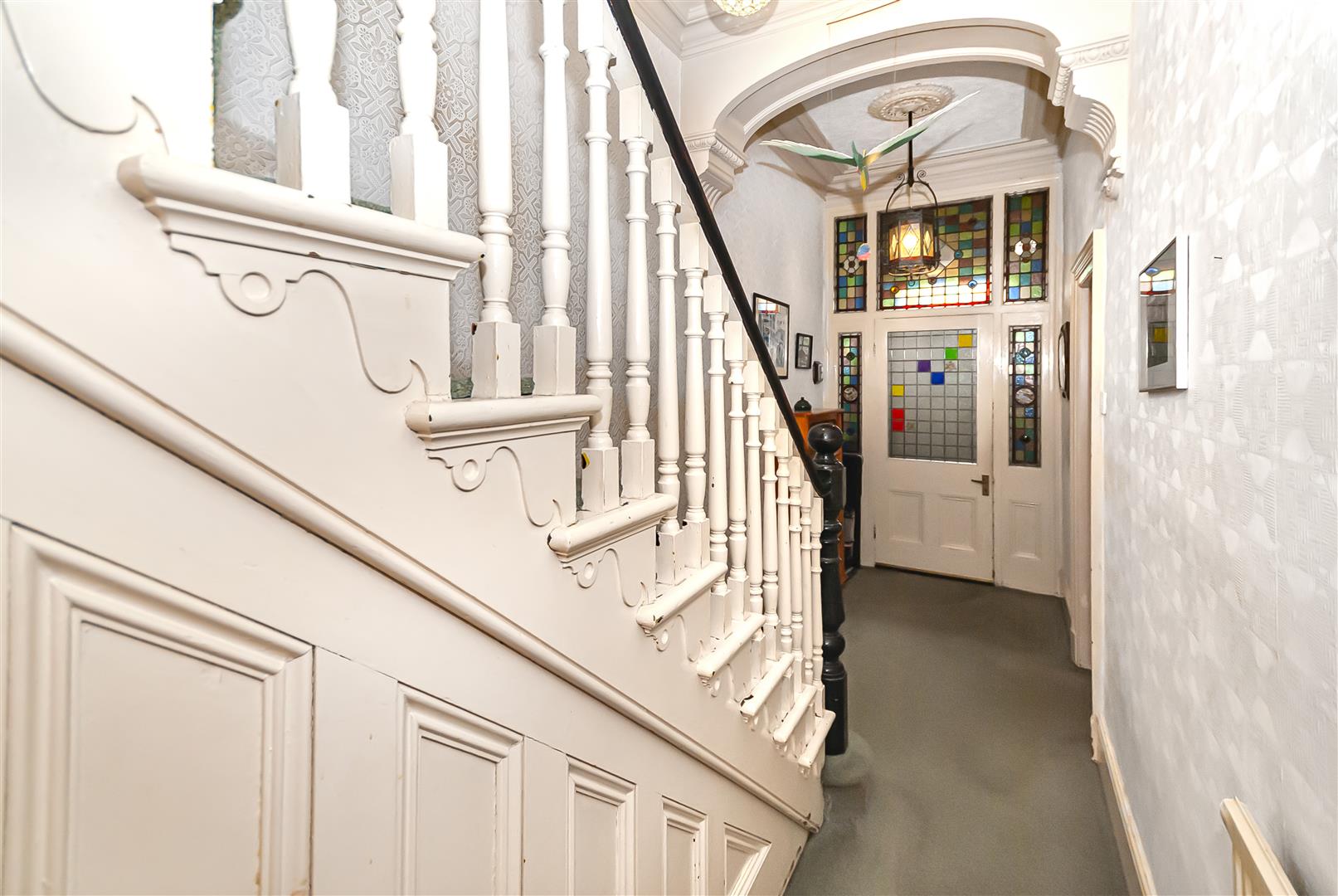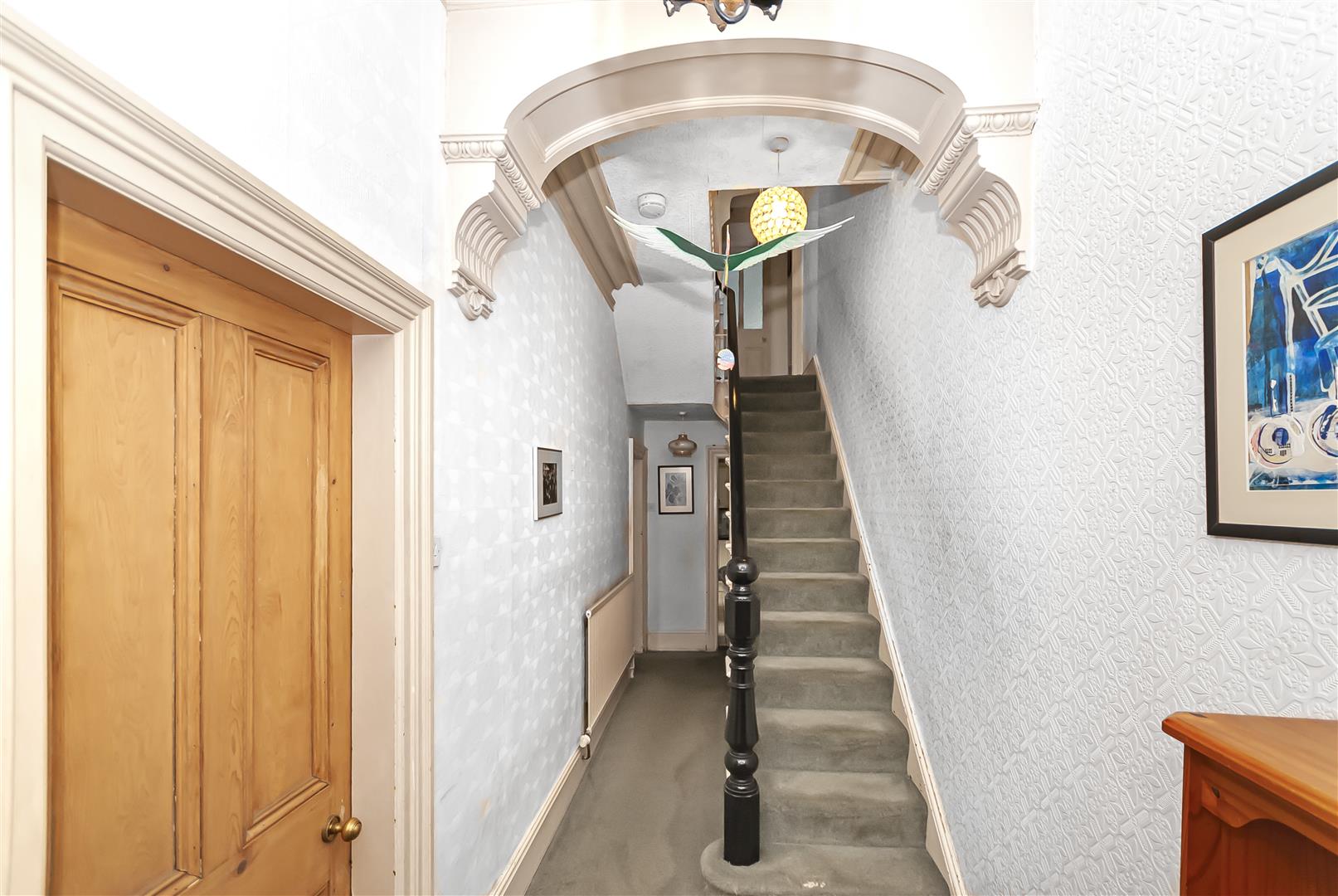 A welcoming entrance space featuring original character details, staircase to the first floor and access to principal rooms.