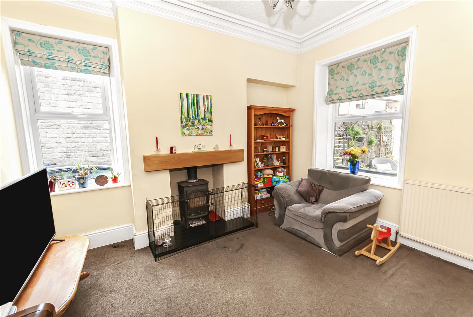 A bright and spacious second reception room to rear of property with high ceilings, log burner and ample space for furnishings, living space could be used as dining room or second lounge.