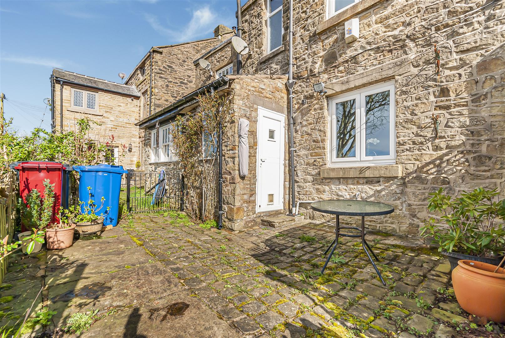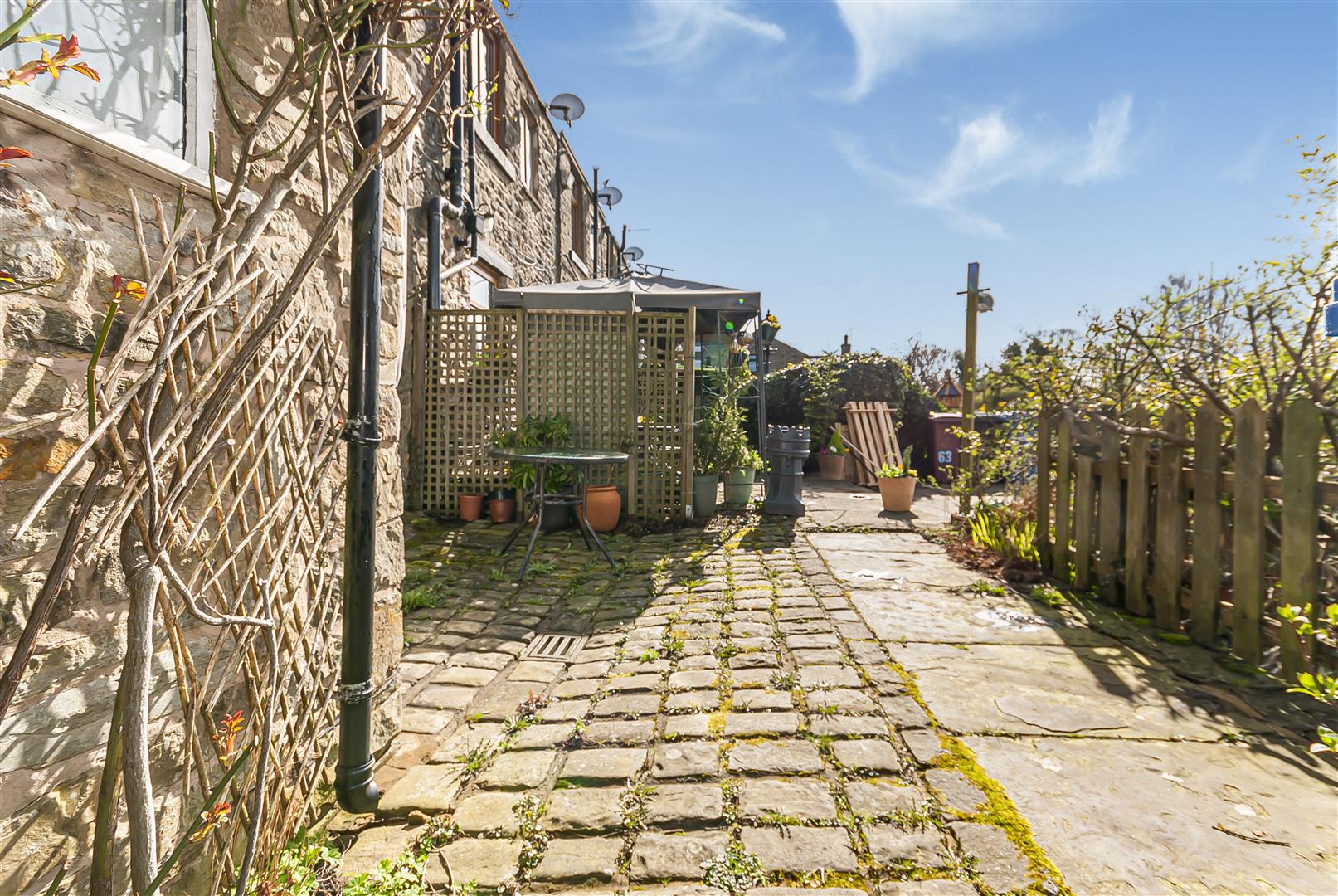 To the rear of the property is a charming stone patio garden, providing a private outdoor seating area ideal for relaxing or entertaining. Surrounded by mature planting and enjoying attractive outlooks towards greenery.