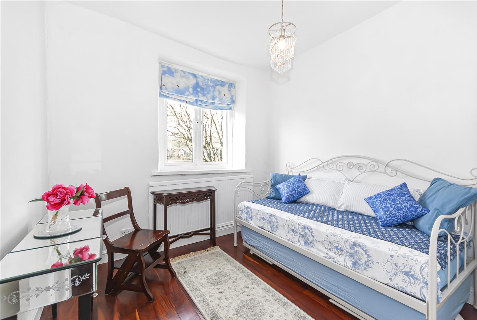 A well-proportioned second bedroom which could also serve as a guest room, dressing room or home office. The room enjoys beautiful views to open countryside and features neutral décor with wooden flooring.
