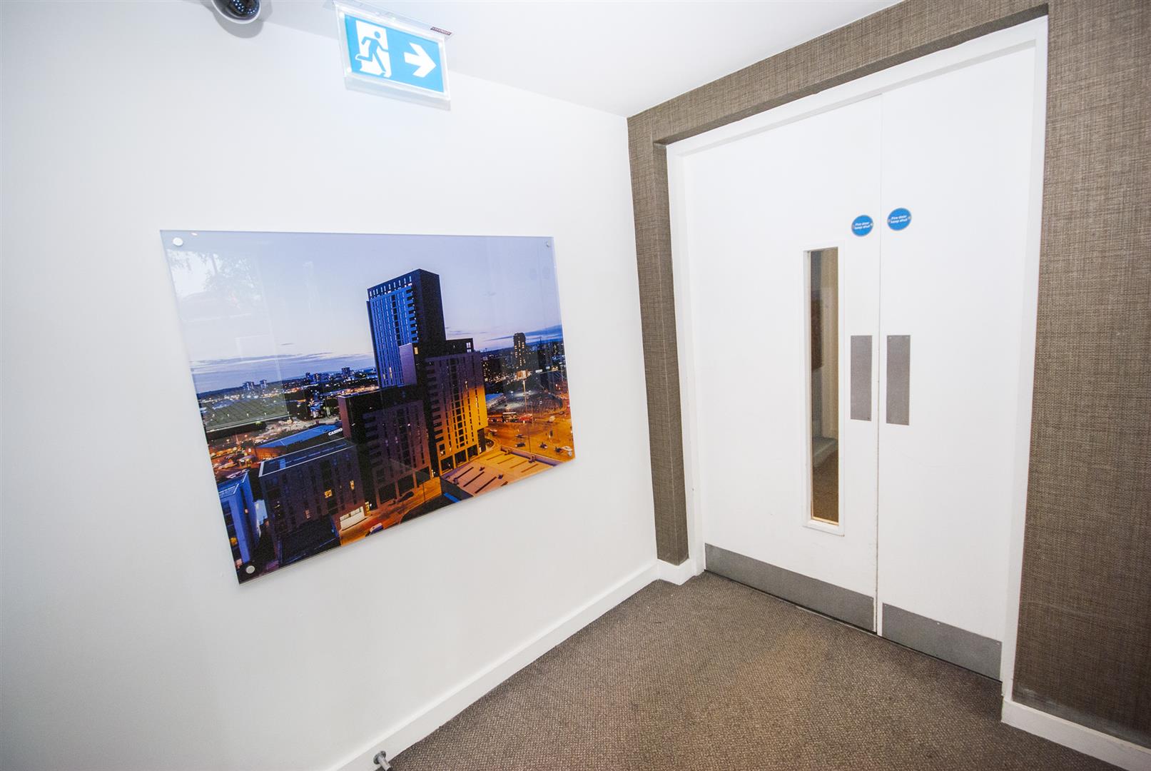 Private entrance on the 20th floor opening to the hallway.