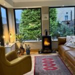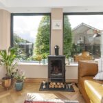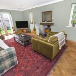 uPVC double glazed windows to side elevation and additional double patio doors leading to the rear garden. Fitted with a granite hearth fireplace and inset wood burner with wooden mantel, wooden Parque flooring, ceiling coving and inset ceiling spot lights.