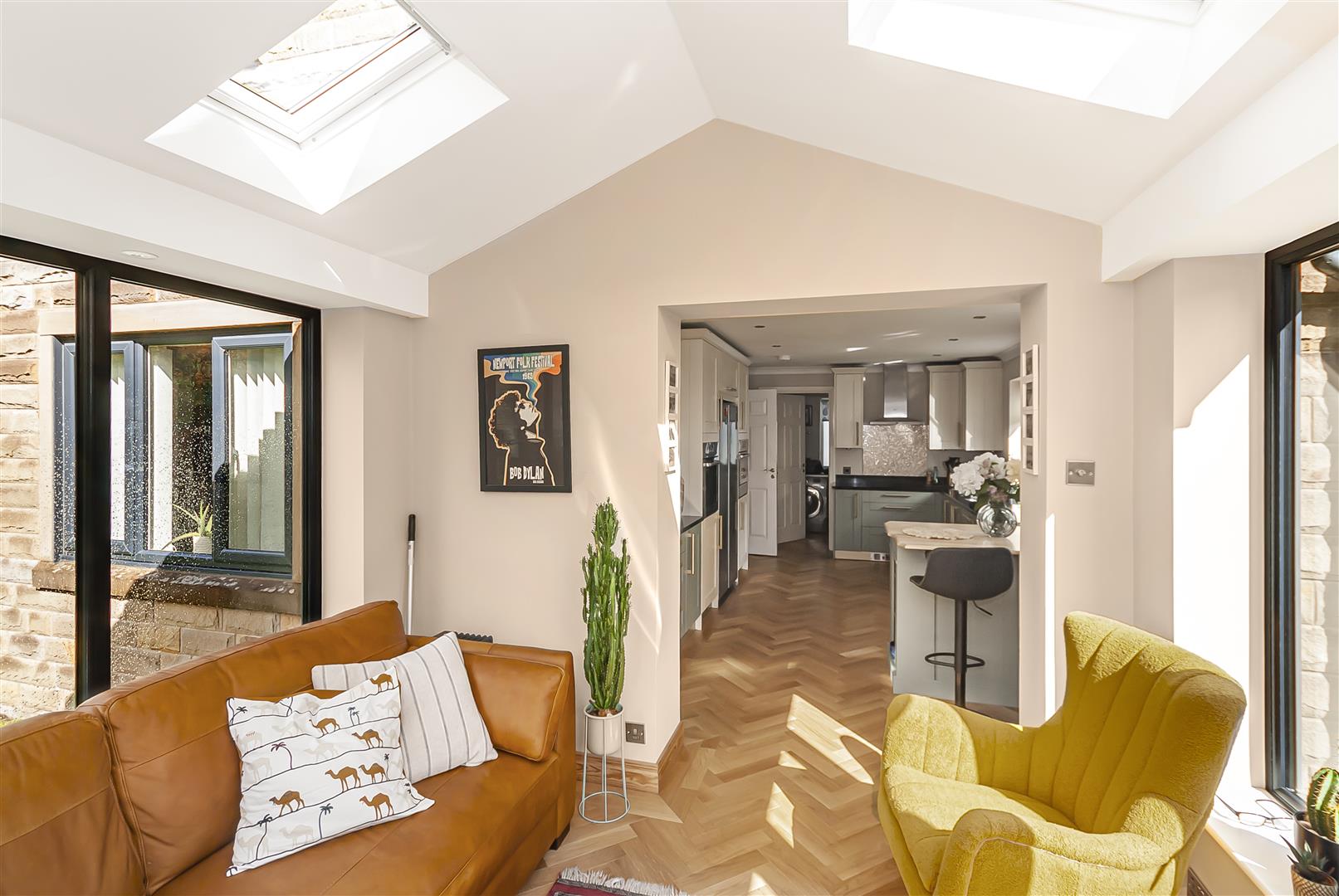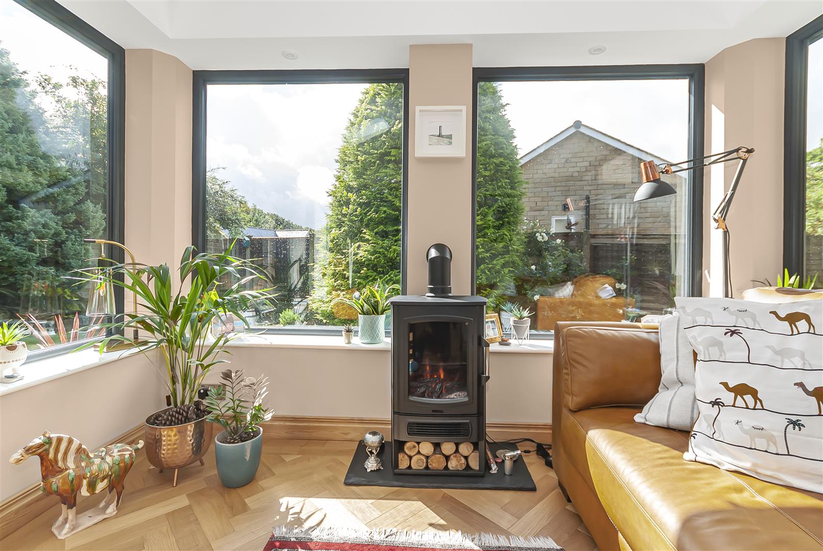 uPVC double glazed windows to three elevations overlooking the rear garden. Fitted with a free standing wood burner and wooden Parque flooring.