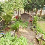 Communal space to the rear, with mainly laid to lawn and storage sheds to side of the property.