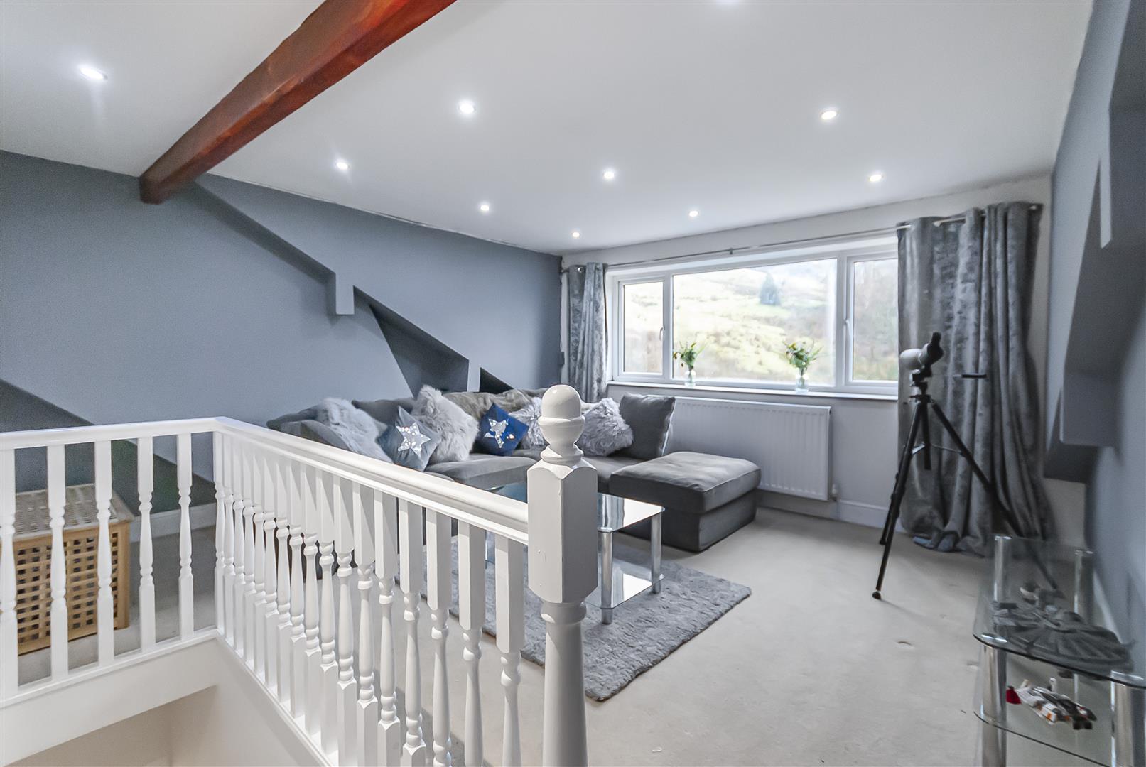 To the rear, the property enjoys a tiered garden backing onto open countryside. A lawned section provides space for outdoor enjoyment, with stone retaining walls and steps leading up to a raised decked seating area - perfectly positioned to take advantage of the far-reaching views. This elevated outlook is a standout feature, offering a wonderful sense of privacy and connection to the landscape.