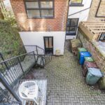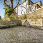Private paved courtyard garden enclosed by stone walls, offering a low-maintenance outdoor space ideal for seating and entertaining.