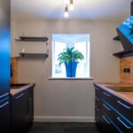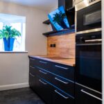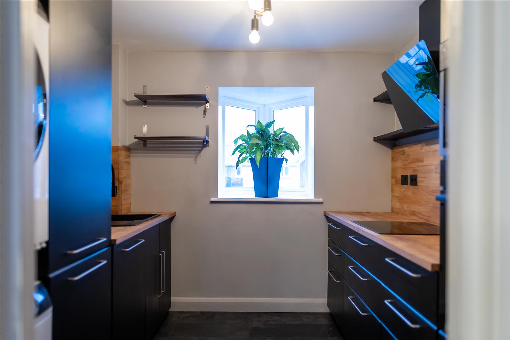 With feature V shaped window, tile effect laminate flooring, power points and a range of wall and base units with solid wood oak surfaces, inset sink with drainer unit and pressure tap, integrated dishwasher and integrated fridge freezer, built in oven and microwave, electric hob and extractor hood, and free standing washing machine and separate dryer included.