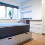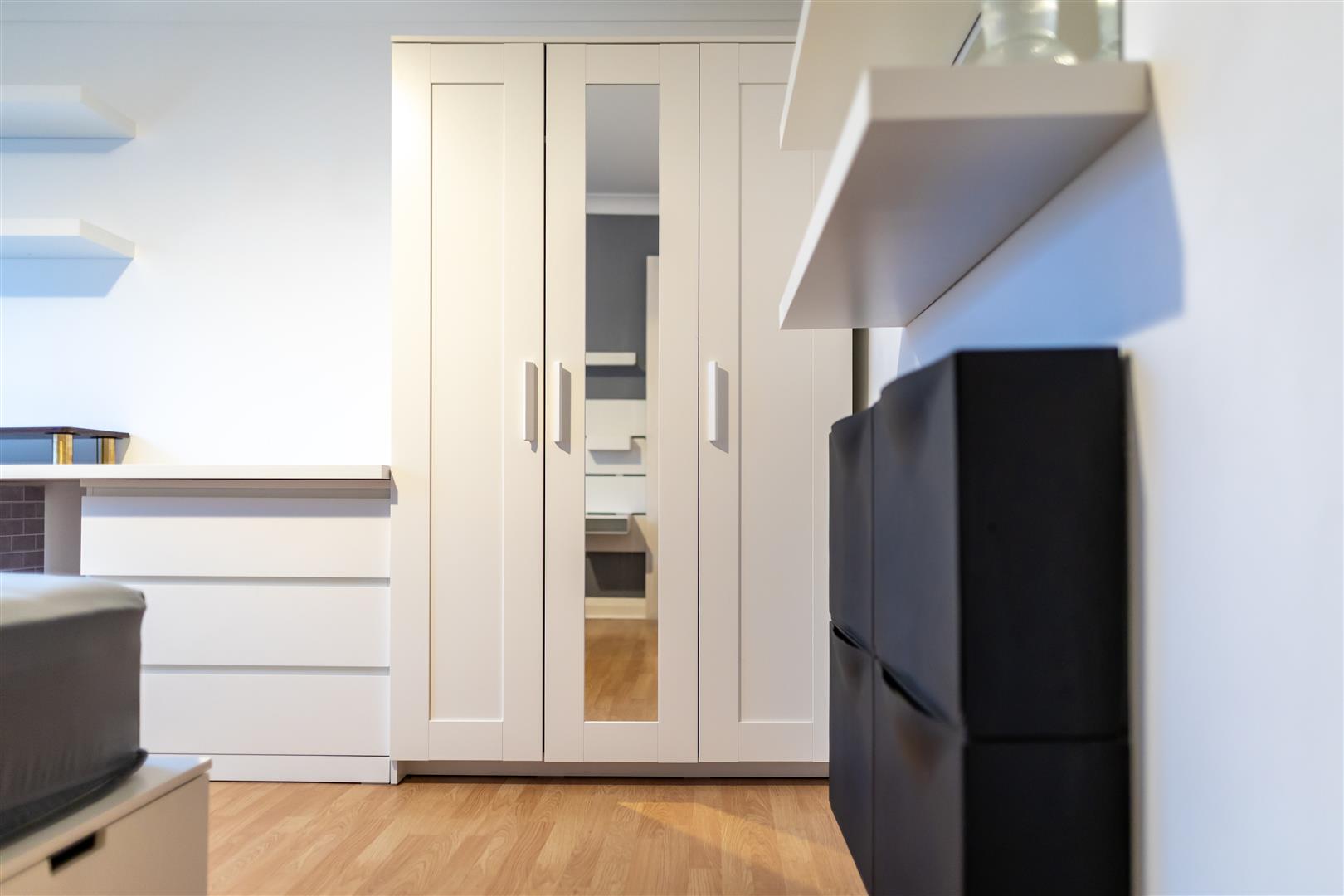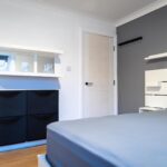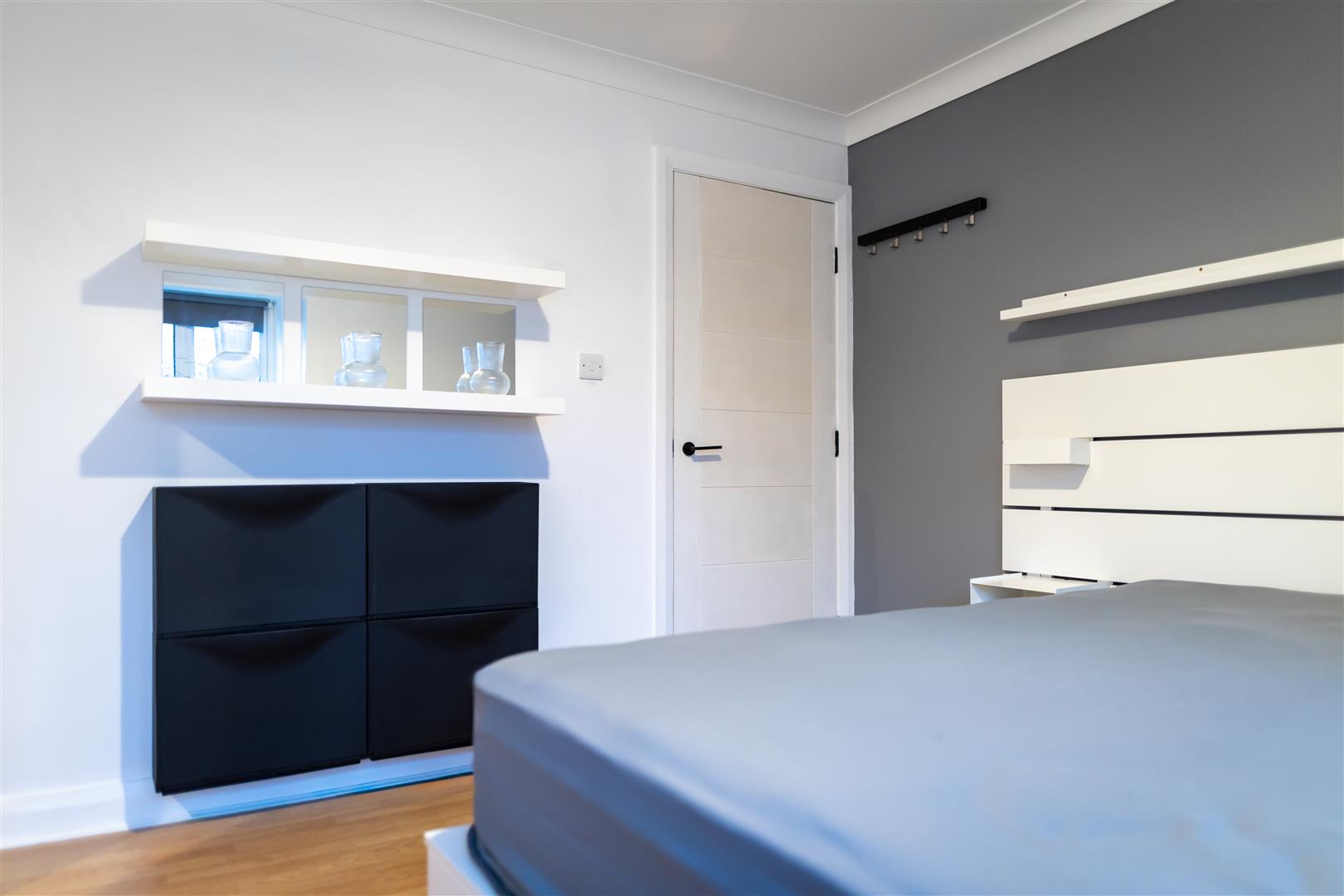 With window overlooking the quays, wood effect laminate flooring, electric wall heater, power points, fitted wardrobes and dresser/ desk unit.