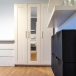 With window, wood effect laminate flooring, electric wall heater, power points, fitted wardrobes and dresser/ desk unit.