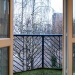 With laminate wood effect flooring, UPVC French doors leading to the balcony with UPVC double glazed windows either side, electric wall heater and power points.